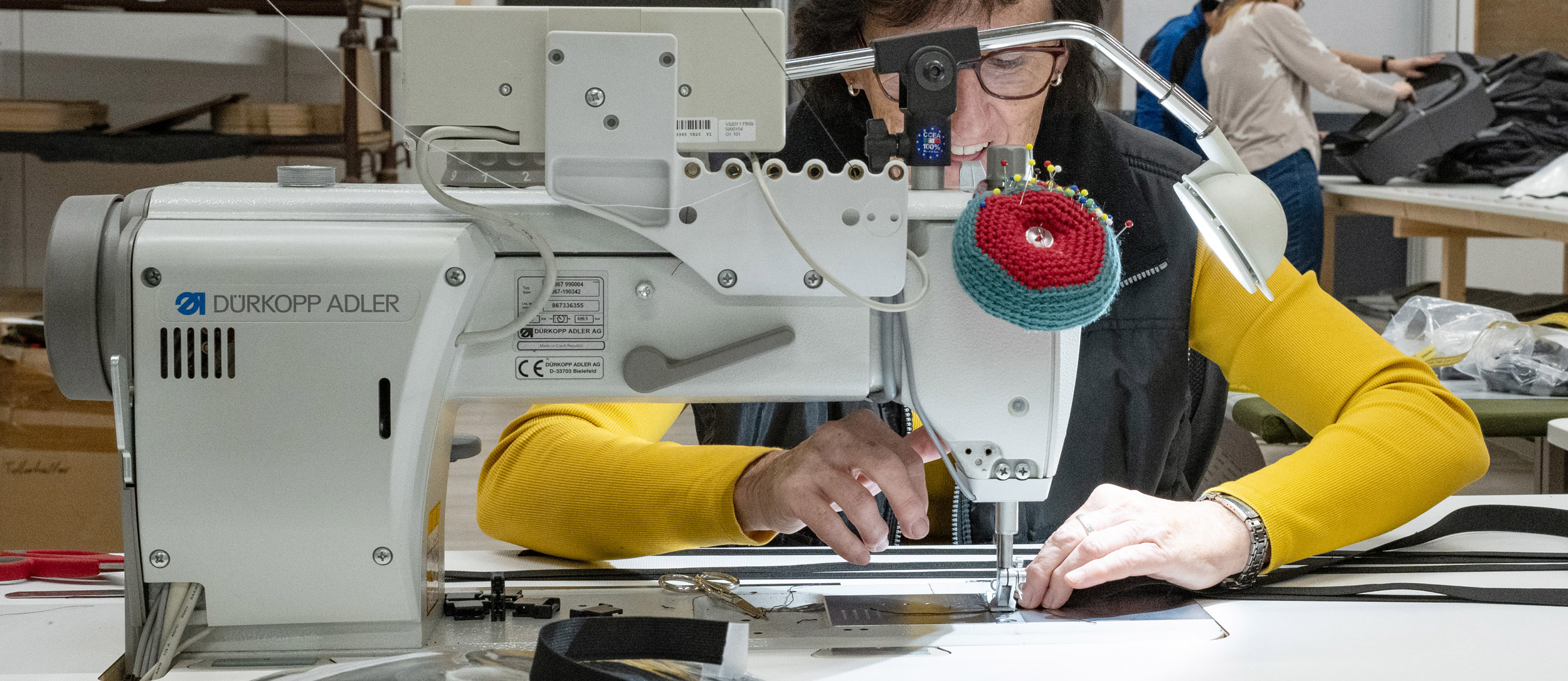 Zuschneiden und Stanzen, Nähen und Tapen, Tackern und Polstern – all dies gehört zu unserem täglichen Handwerk. Selbstverständlich schulen und fördern wir ständig alle unsere Mitarbeiter aus allen Abteilungen, um auch in Zukunft höchsten Ansprüchen zu genügen.